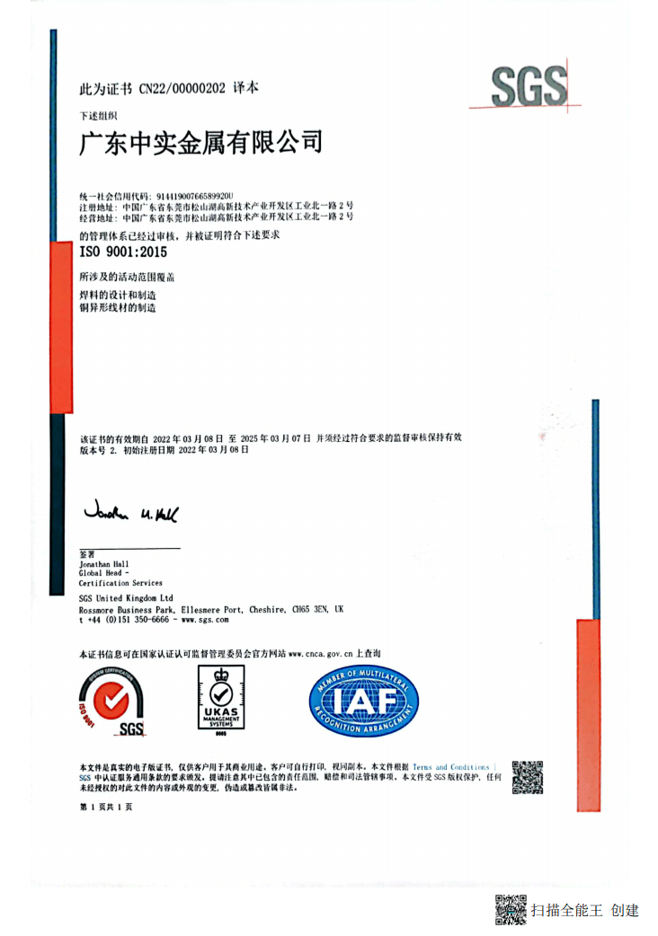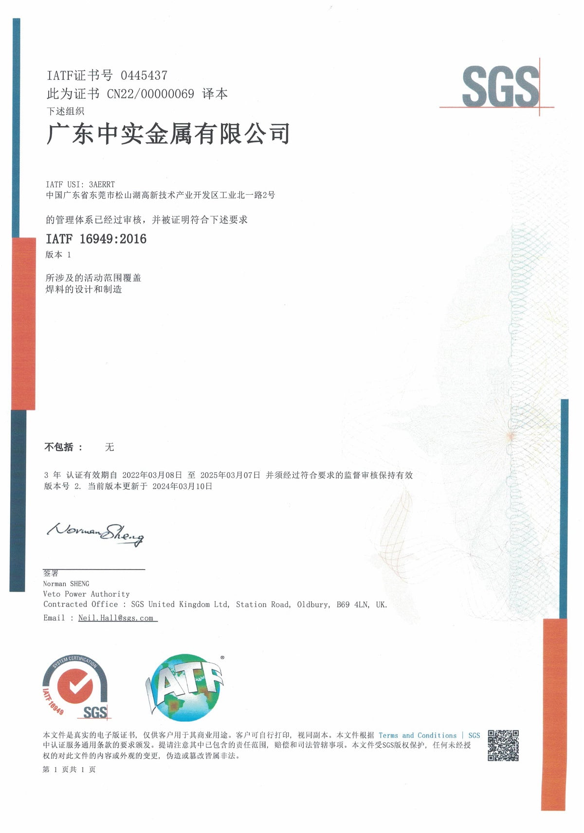 作為深耕高端焊料20多年的行業頭部企業,中實金屬不僅重視企業產品質量管控,也看重企業與環境的并行可持續發展,公司一直遵循嚴格的管理體系進行產品研發和生產,擁有被權威機構認可的國際化管理水平。